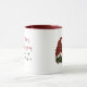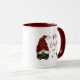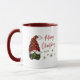 Tasse à café rustique de style campagnard avec "Joyeux Noël" et l'année dans un script de calligraphie rouge et vert festif. Ce design amusant, imprimé sur les deux côtés de la tasse, présente un gnome dans une tenue de vacances rouge & vert avec un motif de flocon doré. Parfait pour la saison des fêtes.
