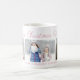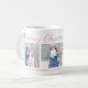 Personnalisez cette tasse festive de Noël pour café ou chocolat chaud avec trois (3) photos et un texte personnalisé. Le design par défaut présente "Vœux de Joyeux Noël" en écriture cursive avec trois photos d'enfants et un message personnalisé pour leur tante (peut être personnalisé). Comprend des croquis de flocons de neige et un texte rose poussiéreux qui peut être personnalisé à une couleur différente.