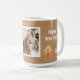 Cette tasse photo de vacances présente un message classique en forme d'arbre de Noël amusant, maison en pain d'épices et présente sur un arrière - plan brun vintage, radieux et plein d'énergie. Avec une photo sur le devant, c'est une excellente façon d'envoyer la joie de Noël à des amis et à la famille. Customisez ce design pour ajouter une touche spéciale. Personnalisez ceci sur votre propre photo, le texte peut être changé à n'importe quel message. Pour plus de personnalisation, cliquez sur le lien "Personnaliser" et utilisez notre outil de conception pour modifier ce modèle.