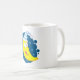 Un joyeux visage de lune jaune portant un casquette bleu et blanc. Cette conception semble vraiment efficace sur ces Mug