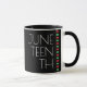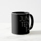 Une tasse à café de fête du 11 juin. Il a un design comprenant un arrière - plan noir, une bande rouge, noire et verte, et les lettres sont en blanc.
