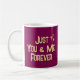 Célébrez l'amour avec la Mug à café Just You & Me Forever - un cadeau sucré pour les couples, les anniversaires ou la Saint-Valentin. Parfait pour les amateurs de café