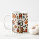 De petites icônes représentant l'essentiel de l'automne comme un citrouille, foulard, bottes et feuilles disposés dans un motif amusant autour du texte "Just A Girl Who Loves Fall" dans une police propre et audacieuse.