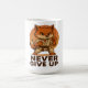 This dynamic Japanese anime- style illustration features a strong fox in a martial arts gi, standing in a powerful stance with bold motivational message "NEVER GIVE UP".