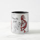 Personnalisez cette Mug Kokopelli Rouge Et Noir "One Of A Genre" ! Il comprend un Kokopelli rouge et noir jouant la Flûte avec des notes musicales sur un Arrière - plan de Noël argenté avec des flocons de neige, entouré de bordures rouges et noires et des mots ondulants... "Paix sur terre"! Design D'Art Original Par L'Artiste Kerry Miller.