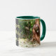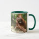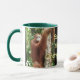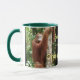 Sauvez les orangs-outans. Une tasse orangue très spéciale avec la "porte-parole" orangue Krista Orangutan de Bornéo. Cette tasse est spéciale parce qu'elle montre Krista comme un tout-petit mâchant sur un bâton pendant l'école de la jungle et comme une femelle pré-ado en croissance. Les ventes de cette tasse soutiennent les travaux de conservation au Centre de soins Orangutan sur l'île de Bornéo.