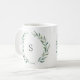 Branches d'olivier botaniques d'aquarelle, feuille, tasse décorée d'un monogramme.