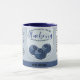 Maman's retro World Class Love Blueberry Jam Coffee Mug. Confiture de bleuet faite à la main emballée avec l'amour de maman étiquette. Le cadeau idéal pour la Fête des Mères ou Anniversaire. La conception de la tasse contient des faits nutritionnels, des informations sur l'allergie. et humbling mère comme des citations.