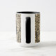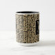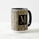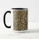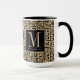 Une tasse élégante de monogramme avec l'inspiration du tissu centrafricain de Kuba dans un noir et un motif coloré par sable.