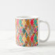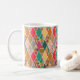 Cette tasse a un design Boho de diamants avec différents motifs alternant avec des diamants solides dans une palette de couleurs Boho.