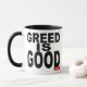 Plus célèbre prononcé par Gordon Gecko dans le film de Wall Street en 1987, "La cupidité est bonne" est un langage essentiellement des années 1980. Au 21ème siècle, alors que les resserrements du crédit, les crises économiques mondiales et le capitalisme vacillent au bord de l'effondrement, nous pensons peut-être moins à la cupidité qu'à la survie. L'ironie et le sarcasme sont des armes puissantes dans la guerre contre les pressions et les peurs de la vie quotidienne. C'est pourquoi nous avons créé cette Greed is Good design, qui porte aussi notre marque SHOCK exclusive.