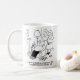 Drôle plaisanterie de bande dessinée sur une tasse de café. La femme dit : "J'aimerais qu'il soit mon homme de rêve, alors je n'aurais pas à vivre avec lui !"