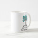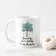 Cette tasse de généalogie comporte un arbre avec le feuille bleu et la légende "généalogie n'est pas un passe-temps que c'est une obsession".
