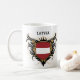 Conception fraîche de crête avec des couleurs lettons de drapeau national. Remplacez le texte "Lettonie" par votre propre slogan pour créer un cadeau letton personnalisé unique de fierté.