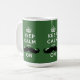 La moustache verte et noire sur le calme Keep et continuent le slogan avec les graphiques britanniques originaux d'affiche de temps de guerre sur une tasse. Elke Clarke ©2012. Une tasse drôle d'humour fait un grand cadeau de motivation pour des amants de moustache et des porteurs de moustache semblables. Pour d'autres couleurs contactez le propriétaire de magasin.
