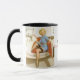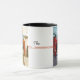 les petites filles Vintages et les automobiles classiques; une allumette faite au paradis des voitures. Cette tasse à ringard noir et blanc présente deux pinces vintages et du texte rouge (au centre).