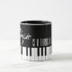 Ce design s'adresse aux amateurs de musique, jeunes et vieux. Cette tasse présente un design simple et élégant avec un clavier de piano. Au-dessus du clavier, on peut lire "La musique est une chose de beauté". La couleur de la poignée et de la jante peut être modifiée, et vous pouvez customiser la couleur arrière - plan.