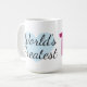 Cette tasse mignonne et simple est dotée d'un coeur bleu clair avec les mots "Plus grande tia du monde" en noir et rose. Le cadeau parfait pour l'anniversaire ou la fête des mères pour cette tante spéciale dans votre vie!