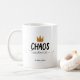 Tasse drôle pour les femmes professionnelles ou les mamans. Le texte indique que le "coordonnateur de chaos" et il y a une illustration d'une couronne sur le dessus. Ajoutez un nom sous le texte. Grands cadeaux pour des mères et des professeurs ! Conception féminine et humoristique.