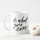Cette tasse de typographie moderne présente la citation inspirante faire ce que vous aimez. © Julie McIver
