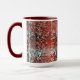 Imagem de pequenos quadrados tipo pixels que lembram uma parede de ladrilhos ou cerâmica vermelho, porém, com muitas manchas e pequenos respingos que parecem manchas e borrões de tinta spray.