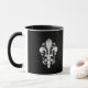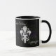 La conception de Fleur de lis inspirée par le travail de fer trouvé dans la ville de la Nouvelle-Orléans, cette tasse comporte également des accents colorés par mardi gras sur une expression de la Nouvelle-Orléans de côté et d'amusement.