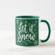 Élégant script café de Noël tasse. Le design comprend le texte "Let It Snow" en typographie blanche avec des éléments d'étoile blanche et des accents tourbillonnants. Faites pour le meilleur cadeau personnalisé pour vous-même, vos amis, les membres de votre famille et même les voisins. Nous avons plus de 35 tasses de café de Noël dans notre collection que vous aimerez certainement. S'il vous plaît vérifier et obtenir le meilleur cadeau de Noël avec des voeux spéciaux pour vos personnes spéciales. Joyeux Noël!