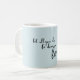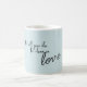 Arrière - plan gris bleu avec police manuscrite noire avec citation disant "Que tout ce que vous faites soit fait dans l'amour" | Mug de café. Recherchez cette conception sur d'autres produits de Farmhouse Living.