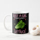 Ce dessin est composé d'un personnage de laitue de dessin animé avec un grand sourire, portant un casquette vert feuilleté et portant une pancarte disant "Lettuce Just A Who Loves Lettuce". Une façon amusante et fantaisiste de montrer votre amour pour la laitue !