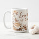 Commencez votre journée enveloppé de chaleur et de charme avec cette magnifique tasse Love is Brewing. Dotée de florales aquarelles douces dans des tons automnaux chauds et d'une illustration de latte art cosy, cette tasse apporte une touche de romance et d'élégance à chaque gorgée. La phrase manuscrite « L'amour est dans l'air » en fait un objet parfait pour les amateurs de café, les buveurs de thé et tous ceux qui aiment un peu d'inspiration avec leur rituel matinal.