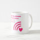 Cette tasse blanche contient le texte "L'amour est l'ultime connexion WiFi : il ne connaît pas de limites" dans une police rose. Sous le texte, il y a un graphique d'une icône de signal WiFi avec une forme cardiaque en bas à droite des lignes de signal. Le design utilise habilement une métaphore moderne pour décrire l'amour, la comparant à une connexion WiFi qui transcende les frontières. C'est un cadeau parfait pour quiconque aime la technologie et l'amour.