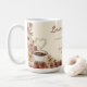 Laissez l'amour infuser avec cette tasse de café de mariage Love is Brewing chaude et confortable. Conçue dans des tons terreux crème et brun clair, avec un bouquet floral entourant une tasse de café remplie d'un cœur, cette tasse est parfaite pour un événement printanier ou automnal. Personnalisez-la avec les détails de votre événement pour une célébration pré-mariage unique dont la future mariée se souviendra toujours.