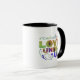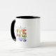 Le design de la tasse présente le message "L'amour nous unit" dans un affichage multicolore et audacieux. Chaque mot est une couleur vibrante différente, créant un sentiment d'énergie et d'inclusion. Le texte lui-même a une police propre et moderne qui se démarque clairement sur la tasse.