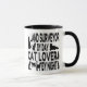 Cette tasse amoureux des chats avec la citation "L'arpenteur des terres par Amoureux des chats de jour par nuit" est parfaite pour tout arpenteur qui aime les chats.