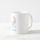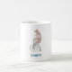 Une tasse à café personnalisée. Ajoutez votre nom ou un autre texte. Illustration fantaisiste de style vintage avec un lapin blanc aux oreilles longues, portant un pantalon jaune, assis sur les guidons d'un vélo vintage à l'ancienne (grande roue avant et petite roue arrière). Le vélo est pédalé par un gros ours brun avec des taches blanches sur le dos. Adorable et mignon.