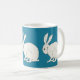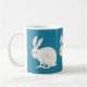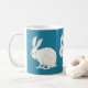 Mug lapins de lapin assis blanc élégant sur le bleu