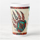 C'est une Mug en latte de Paw Bear Tribal Unique "One of a Kind" ! Il est doté d'une patte d'ours tribale amérindienne qui représente la protection et la santé...sur un Arrière - plan de Tan Sandstone...Entouré d'une frontière sud-ouest turquoise, orange et noire ! C'est un graphisme original de l'artiste Kerry Miller.