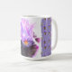 Mug Latte floral Iris Iris violet peint à la main. Un glorieux design floral aquarelle. Conçu à partir de mes peintures aquarelles originales, que j'ai peintes dans mon propre jardin de fleurs.