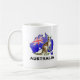 L'Australie est le plus petit continent ; entre le South Pacific et l'Océan Indien. Un kangourou est superposé à la carte remplie par drapeau de l'Australie.