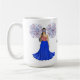 Le 4 juillet Illustrations de mode avec de grands feux d'artifice dans la tasse arrière - plan. Dessin mignon et féminin d'une femme en chemise rayée et une longue jupe bleue. Elle porte aussi des lunettes de soleil en étoile bleue. Conception de tasse 4 juillet unique et agréable pour l'été. Ajoutez un nom pour le rendre plus personnalisé.