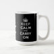 Noir et blanc gardez le calme et continuez les graphiques britanniques originaux d'affiche de temps de guerre sur une tasse. Changez la couleur d'arrière - plan en choisissant la "personnaliser il".