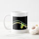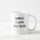Photographie de capture de mouvement par Myron Schiffer sur une tasse de café faite sur commande. Dire sur le "bonheur arrière est affectueux ce que vous faites".