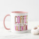 Si vous n'êtes pas vraiment fan de la Saint-Valentin, c'est peut-être la tasse pour vous ! Le texte rose, brun et doré dit "Le CAFÉ est ma VALENTINE". Le texte est répété deux fois sur la tasse. Mignonne, et apportera certainement un sourire!