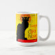 Mug à café avec l’affiche de Théophile Alexandre Steinlen Le Conversation Noir (1896). Un beau chat noir est assis à côté du texte français annonçant un tour de cabaret. Un grand cadeau pour les amateurs d'art vintage et d'Art Nouveau.