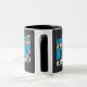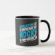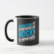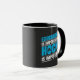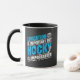 Tasse à thème Hockey amusant avec un texte bleu et blanc sur un arrière - plan noir dit L'éducation est importante Mais le hockey est important!