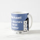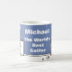 Un cadeau de golfeur de bureau. Mug pour un golfeur passionné au bureau. Le meilleur golfeur du monde. Personnalisez cette tasse avec le nom de l'amateur de golf. Changez le libellé si vous le souhaitez ! Arrière - plan bleu. Image de golf en tapis.