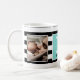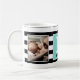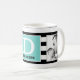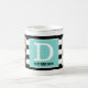 Fête des pères heureuse ! Meilleure tasse de café moderne de papa jamais. Avec les rayures et le monogramme noirs et blancs de bleu des oeufs d'un Robin personnalisé. Ajoutez 2 photos !