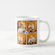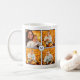 Créez votre propre collage photo avec 4 images carrés dans une grille avec des bords bleu marine minces sur un arrière - plan blanc. Un cercle blanc avec une bordure marine chevauche les coins des 4 photos au centre et présente votre monogramme dans une police serif bleu foncé. Ajoutez vos photos et vos initiales dans la barre latérale pour la personnaliser. Les images et le monogramme apparaissent de chaque côté de la tasse. C'est une façon cool d'afficher vos photos carrés de vos comptes de médias sociaux. Fait aussi un grand cadeau.