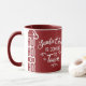 Jolie tasse rouge de vacances avec typographie "Le Père Noël arrive en ville". Parfait pour toutes vos boissons chaudes matinales et nocturnes d'hiver.
