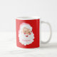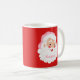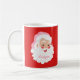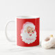 Créez une tasse personnalisée, idéale pour déguster du cacao chaud. Cette tasse présente une illustration de style rétro d'un joyeux Père Noël portant un chapeau de Père Noël rose dressé contre un arrière - plan rouge. Cette tasse est prête à être personnalisée avec un nom en écriture de script rose.